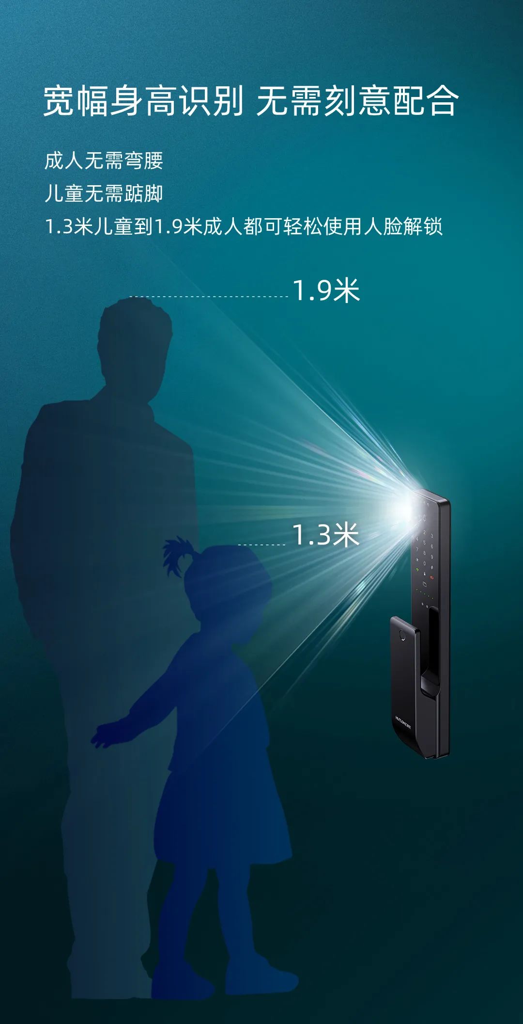 寬幅身高識(shí)別+自適應(yīng)環(huán)境光線識(shí)別,無需刻意配合。V3f人臉安全云鎖使用超大視角,從1.3米兒童到1.9米成人都可輕松使用人臉解鎖,大人無需彎腰、小孩無需墊腳;采用紅外成像原理,搭配IR泛光燈補(bǔ)光,完成“自適應(yīng)環(huán)境光線識(shí)別”的日常使用需求;哪怕環(huán)境是昏暗樓道,有紅外干擾,又或是有高強(qiáng)度陽(yáng)光,人臉識(shí)別依舊高精度、高效、迅速。
