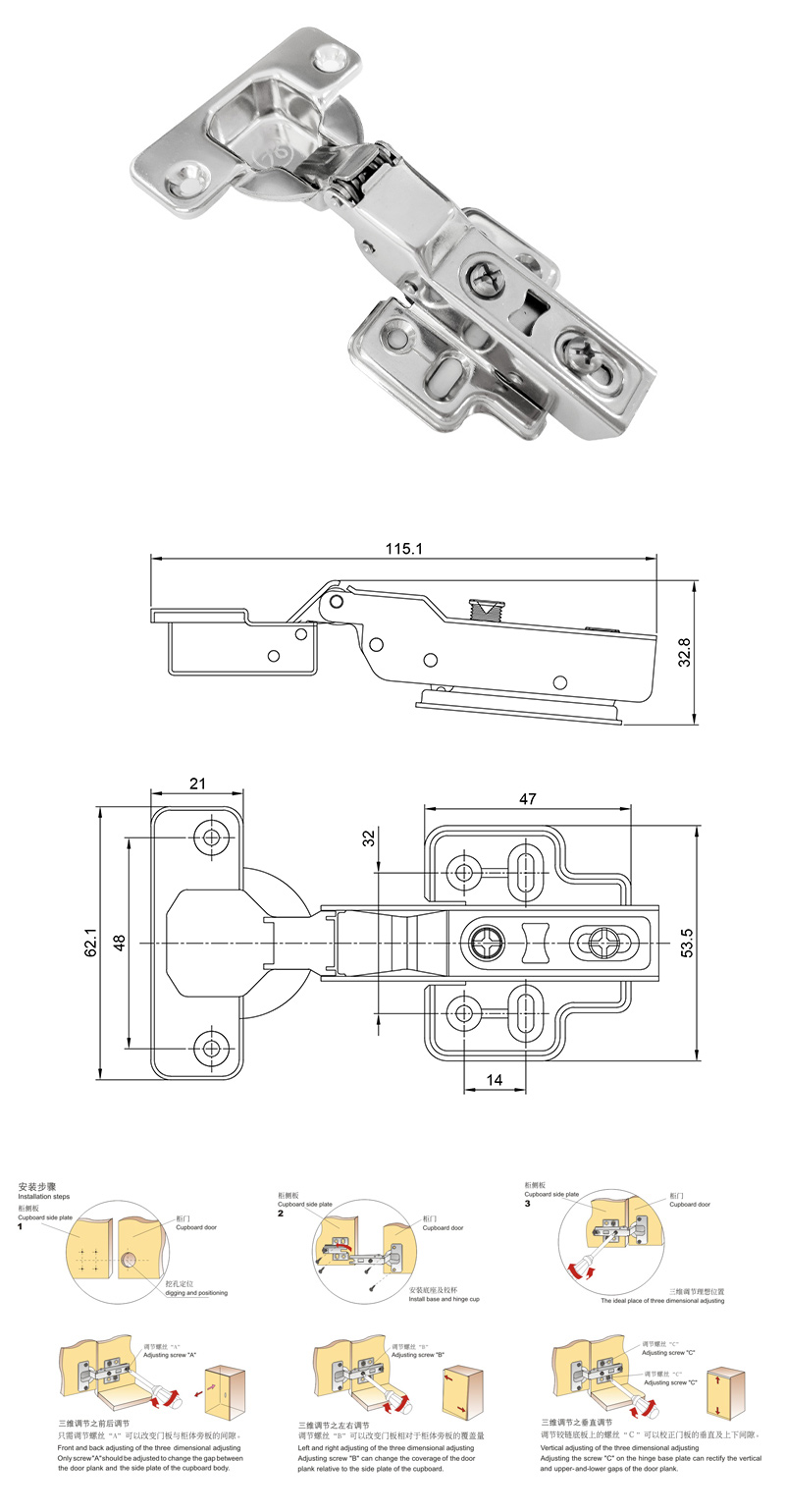 HKF-5453 不銹鋼緩沖快拆暗鉸鏈(半遮)