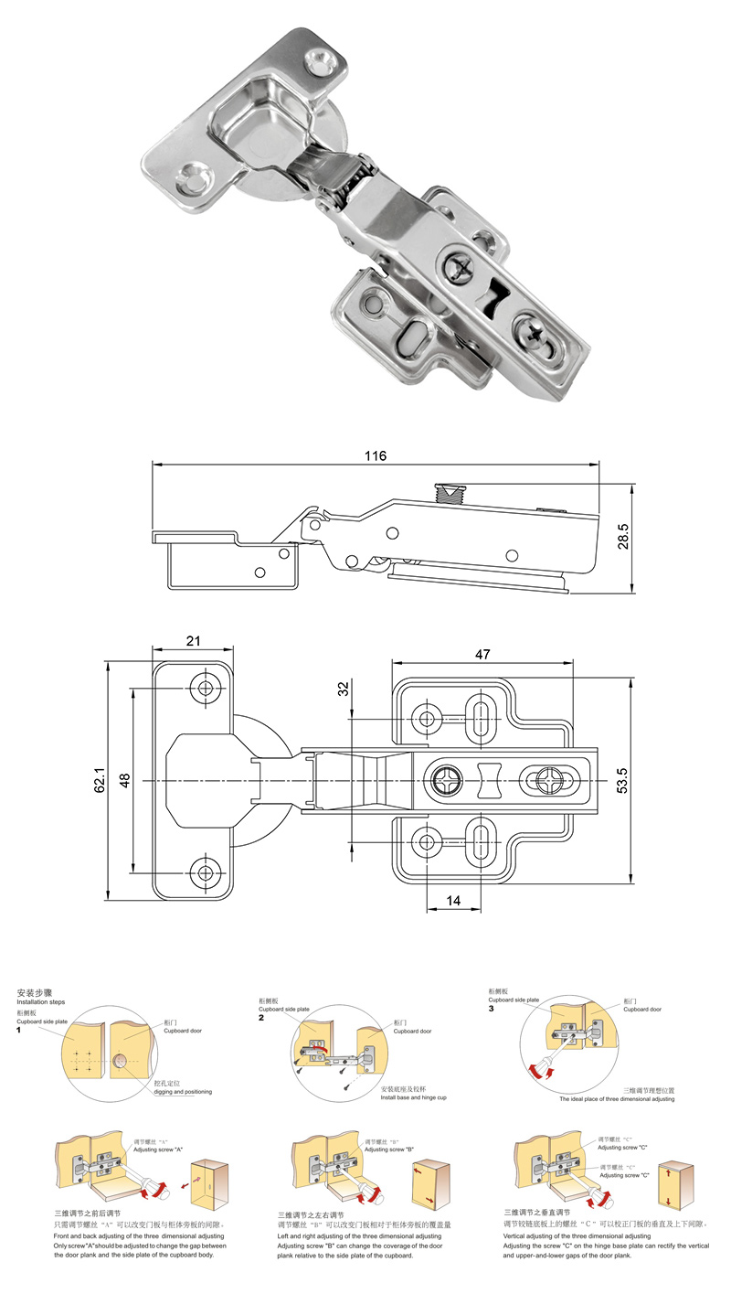開門角度95°,關(guān)門45°時(shí)開始緩沖