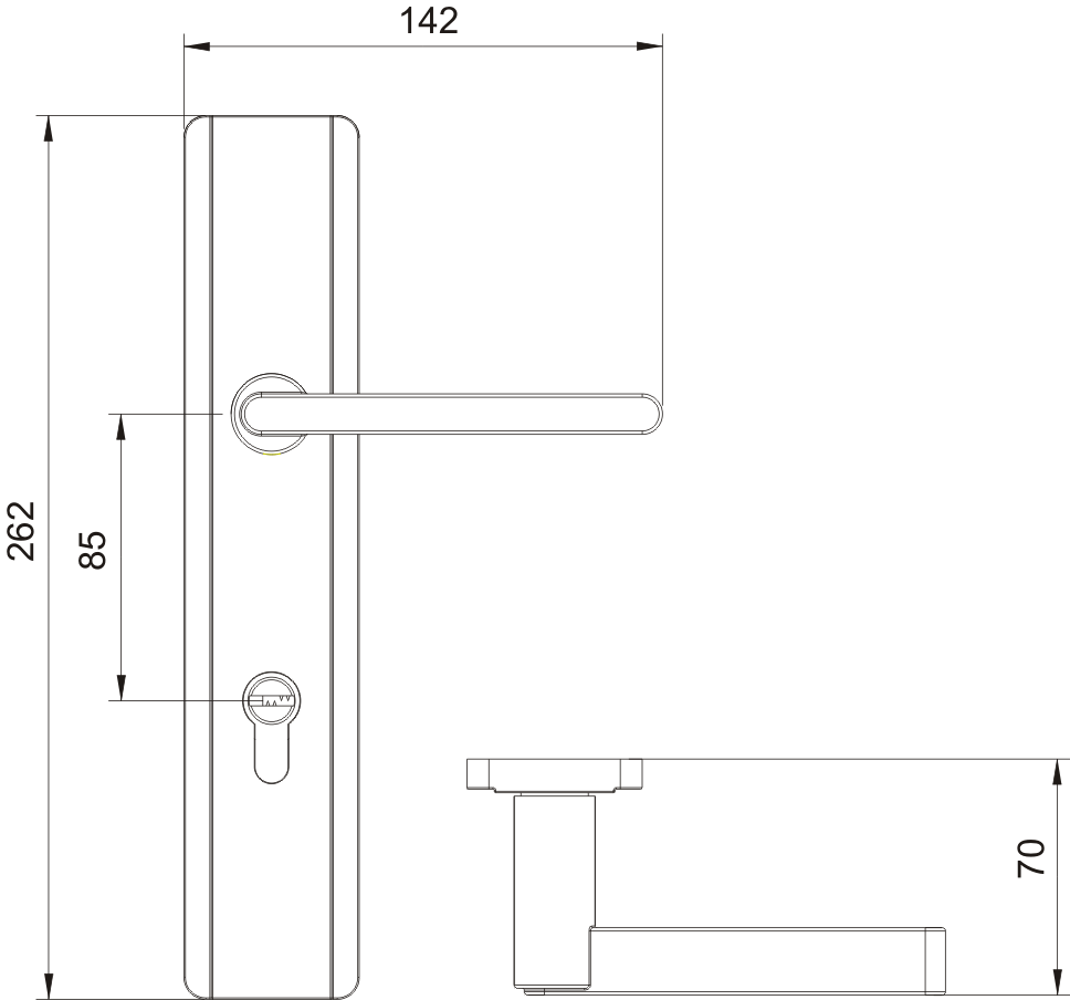4安裝內(nèi)外面板,使把手轉(zhuǎn)動(dòng)順:擰緊螺釘(如上圖:E-F)。