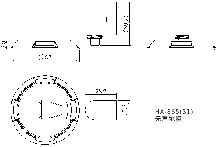 匯泰龍HA-865無聲地吸采用機械式固定門扇,當門吸頭進入門吸座體的時候,帶動底座的旋轉(zhuǎn),底座“緊緊摟住”門吸頭,達到停門功能。