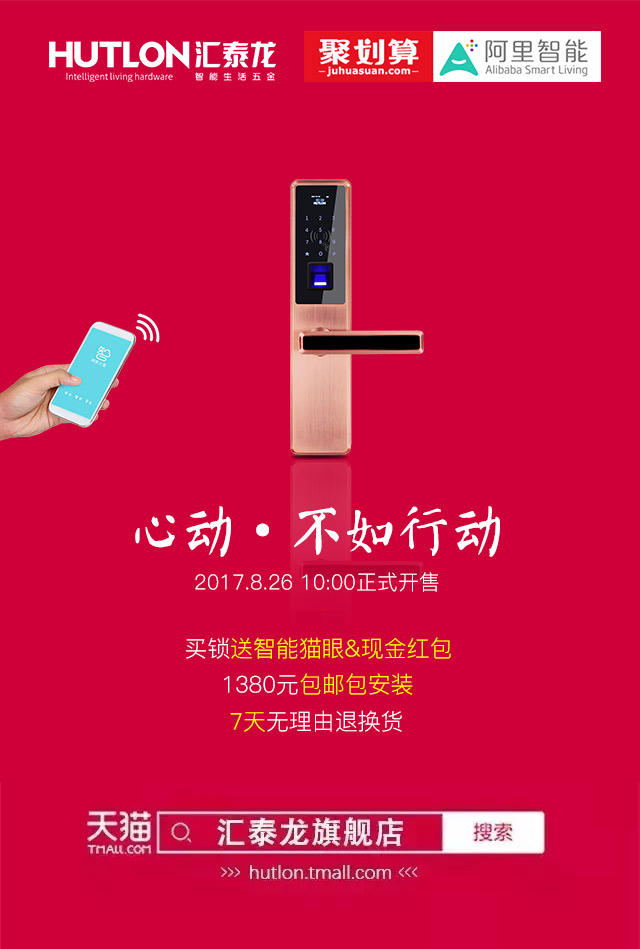 匯泰龍&阿里智能聯(lián)合出品云智能鎖僅售1380元,不止包郵還送壕禮