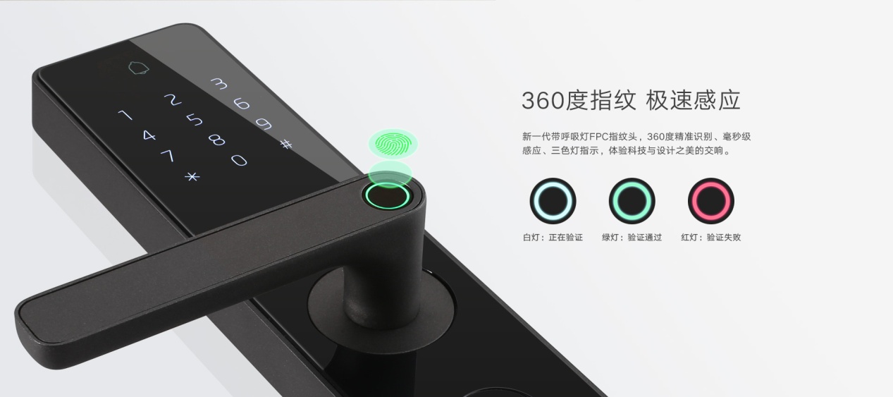 與此同時,配置交互式白、綠、紅三色指示燈,即使在黑夜指紋識別結果也一目了然,科技與設計之美的交響。