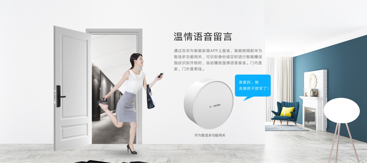 為了給家人更好的生活,我們投入更多的時間到工作中,陪伴家人的時間越來越少。為此,華為智選智能指紋鎖推出溫情語音留言功能,配合華為智能網關即可使用。“昨晚冰箱買了酸奶,這兩天要及時喝哦”、“昨晚我聽見你咳嗽,吃完飯記得吃藥”、“爸媽,感恩節(jié)快樂~愛你們喲”……生活瑣事溫馨提醒,節(jié)日溫情祝福。即使我們和家人的工作休息時間有時差,“陪伴”也不會少。