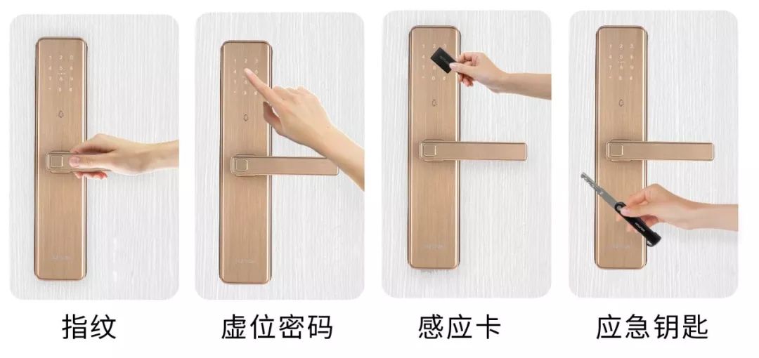A8s支持指紋、密碼、感應(yīng)卡及機(jī)械鑰匙開鎖方式。“帶光圈半導(dǎo)體FPC指紋頭+指紋把手”設(shè)計,開門一氣呵成、一步到位。