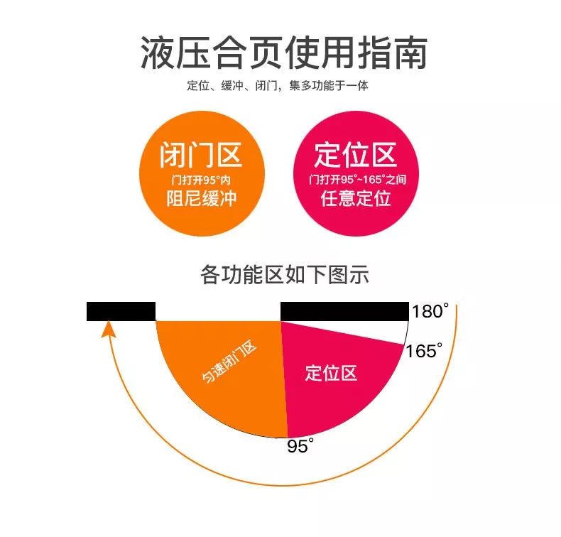 停門(mén)功能:開(kāi)門(mén)角度在95°—165°內(nèi),是定位區(qū)。定位區(qū)內(nèi),我們開(kāi)門(mén)開(kāi)到什么角度,門(mén)就固定在什么角度不動(dòng)。
