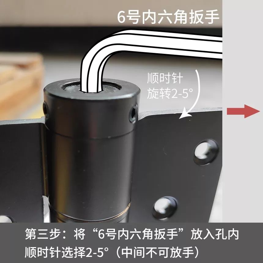完成上面的步驟,合頁(yè)的液壓功能即開(kāi)啟,若定位角度過(guò)大,可重復(fù)第二步及第三步進(jìn)行調(diào)節(jié)喲~