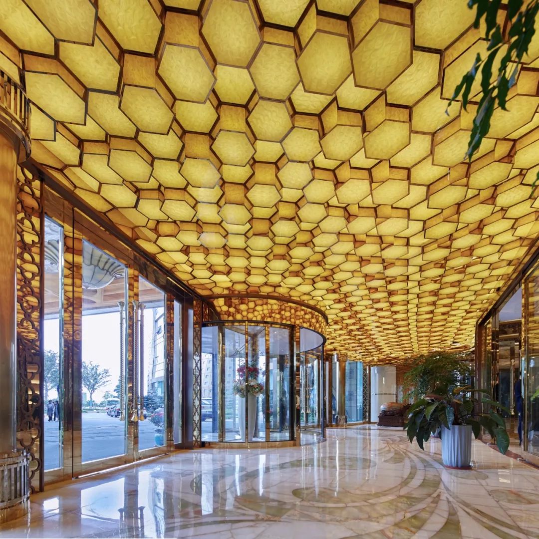 酒店以“蜂蜜”、“蜜蜂”和“蜂巢”為原型,打造出來(lái)的流線、多邊形設(shè)計(jì)遍布酒店,為酒店進(jìn)一步增加了藝術(shù)感和靈動(dòng)感。