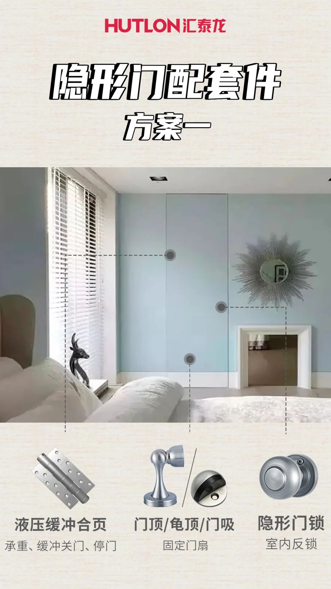 我們推薦一件“神物”——匯泰龍6×4×4系列緩沖液壓合頁。一個小小的合頁就集齊上述三個功能點,如為隱形門“量身定制”一般。