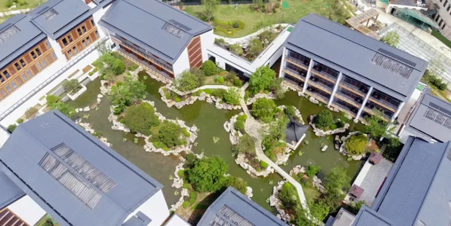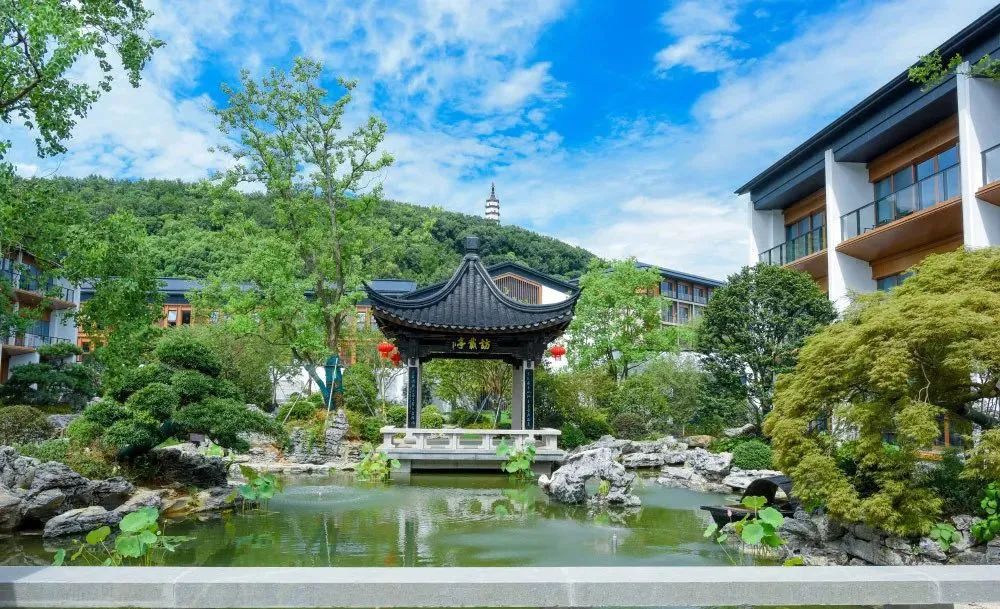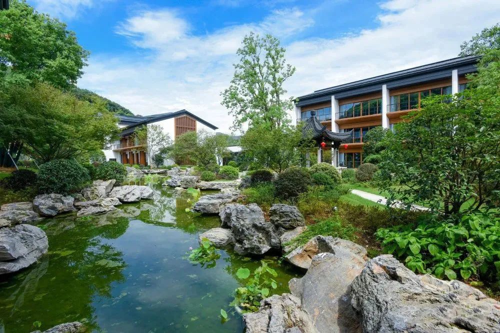 走進嵊州賓館新區(qū),錯落有致的園林景觀,風雅古韻的涼亭,徐徐流動的清水,儼然一副雅致的山水畫卷,讓人不得不感嘆“偷得浮生半日閑”。
