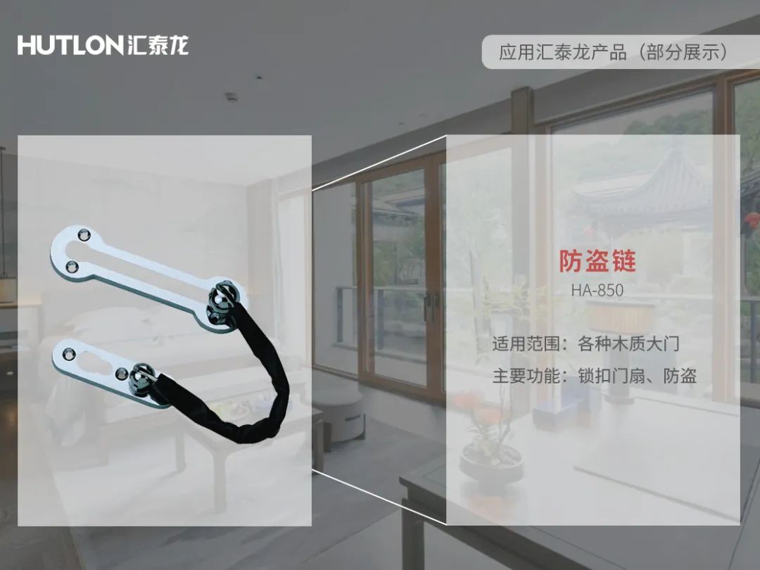 插銷與防盜鏈滿足客人在客房等空間的室內(nèi)反鎖與安全的需求,給客人滿滿的安全感。