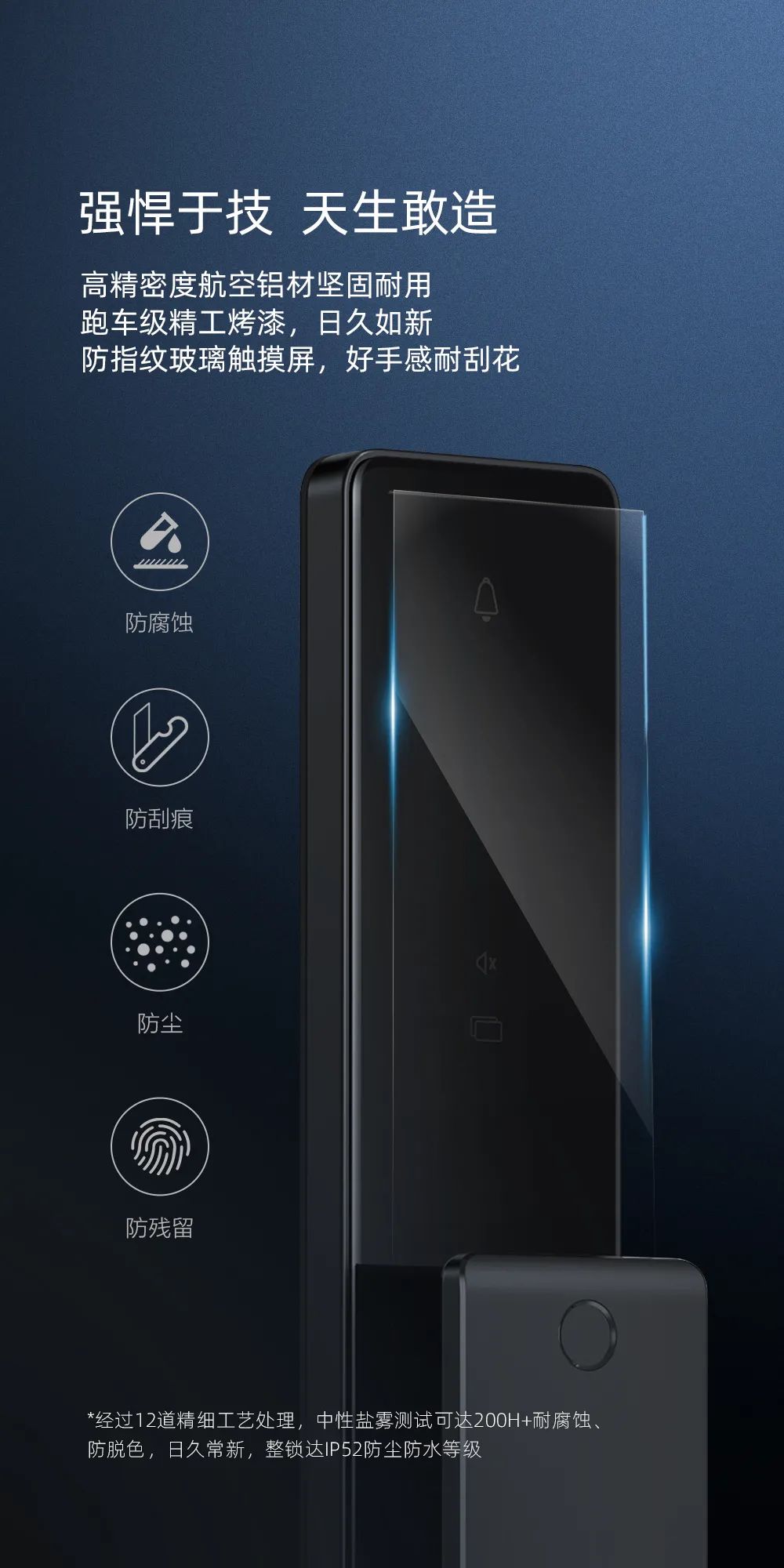 ☆ 聯(lián)網狀態(tài)顯示、低電量燈光與語音提示、指紋識別燈效提示,門鎖狀況可視化;