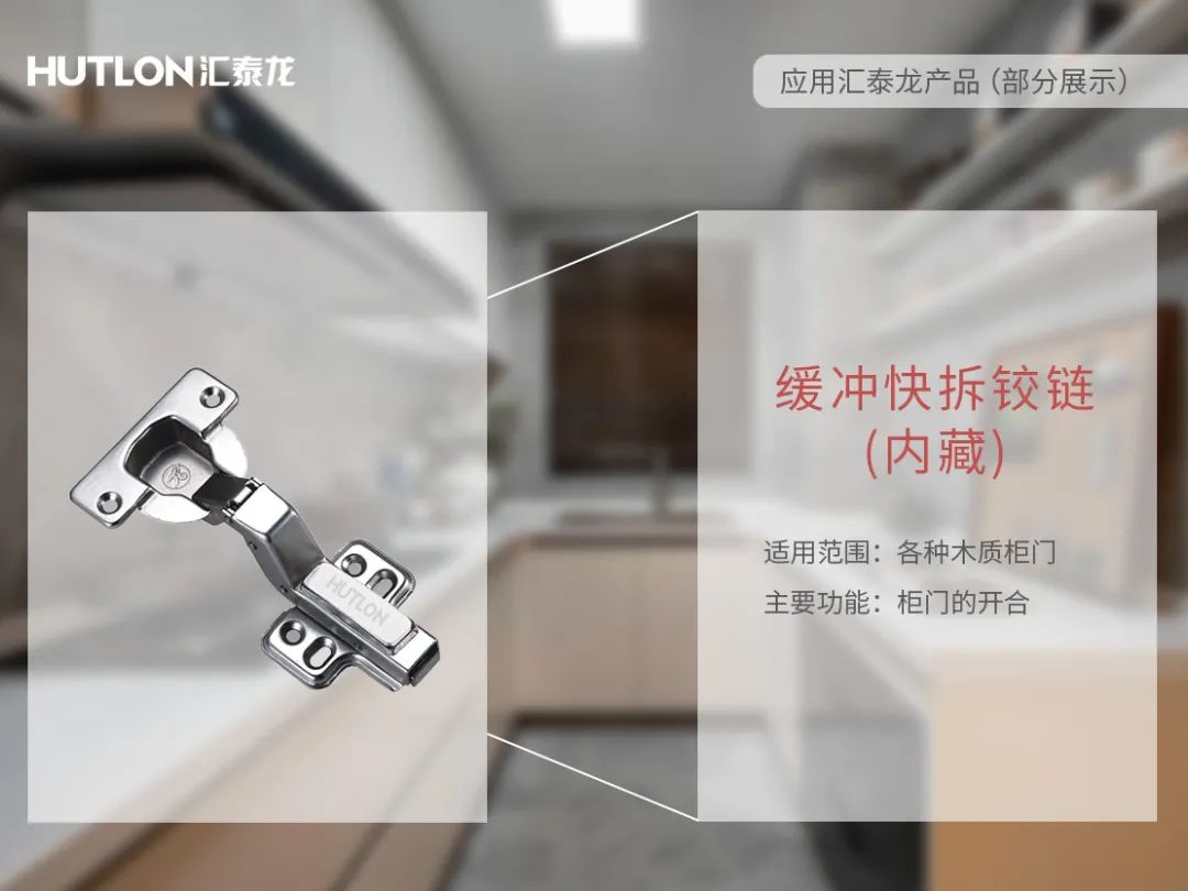 一個(gè)舒適的家,少不了收納空間的規(guī)劃。建發(fā)·天行泱著選用匯泰龍緩沖快拆暗鉸鏈,采用二段力緩沖閉門,哪怕手里拿滿東西,輕輕一推,自動(dòng)、緩慢、輕聲關(guān)閉柜門,省力,不夾手,讓收納空間的使用更貼心。