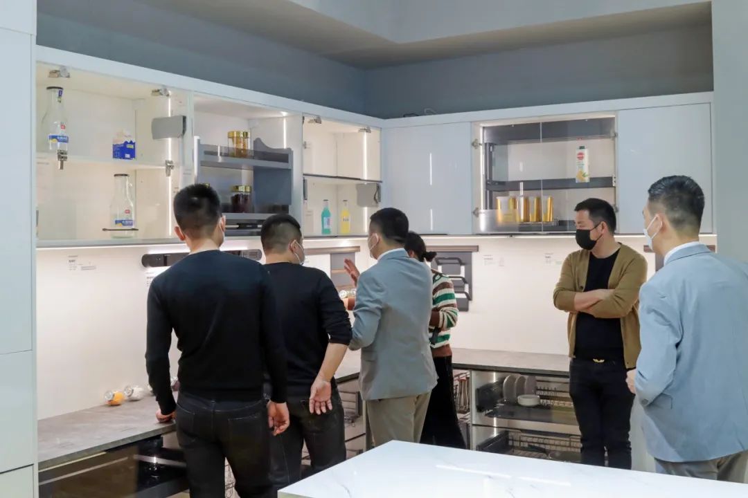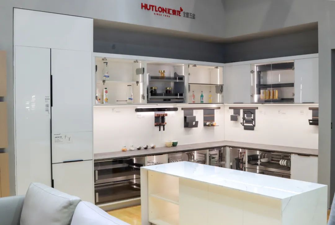 在廚房場景中,客商體驗到智能廚具升降機、碗碟籃、平籃、調味籃、轉角拉籃、高身拉籃等廚房收納五金,發(fā)揮“小空間,大收納”的作用,讓柴米油鹽的生活瑣事變得井然有序。