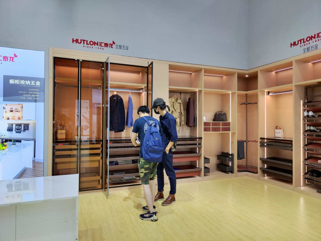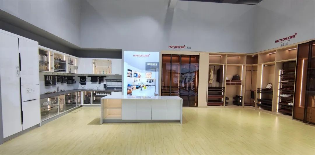 進(jìn)入展館首先到達(dá)匯泰龍定制五金沉浸體驗專區(qū)。匯泰龍選取家居生活中,人們最為關(guān)注的櫥衣柜收納、智能五金,在展館中1:1搭建還原廚房、衣帽間等家居場景,打造理想家居的樣板,帶來沉浸式觀展體驗。