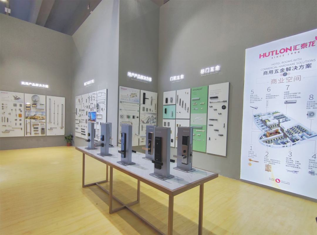 匯泰龍展館的商用五金專區(qū),詳盡地展示了商業(yè)解決方案、酒店解決方案、地產(chǎn)解決方案三大方案,并精選出下游工程客商最為關(guān)注的玻璃門五金、門控五金、移門五金等專項解決方案進(jìn)行展示。