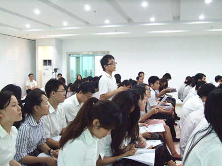 5月20日18:00,所有參與培訓(xùn)人員準(zhǔn)時(shí)來(lái)到培訓(xùn)會(huì)場(chǎng)——裝修一新的新基地五樓多功能會(huì)議廳。經(jīng)主持人簡(jiǎn)要作培訓(xùn)活動(dòng)說(shuō)明以后培訓(xùn)正式開(kāi)始。馮崇恩先生利用三個(gè)小時(shí)的時(shí)間向?qū)W員講解了:產(chǎn)品的生產(chǎn)工藝;產(chǎn)品的工作原理;重點(diǎn)產(chǎn)品的分析;產(chǎn)品使用的注意事項(xiàng);產(chǎn)品的優(yōu)特點(diǎn)等。培訓(xùn)課程采用現(xiàn)代多媒體技術(shù),圖片、影像、圖解結(jié)合現(xiàn)場(chǎng)產(chǎn)品展示,使整個(gè)培訓(xùn)過(guò)程生動(dòng)直觀,另外,馮老師隨機(jī)點(diǎn)名與學(xué)員互動(dòng),了解學(xué)員對(duì)產(chǎn)品知識(shí)的掌握程度和提出相關(guān)專業(yè)問(wèn)題,啟發(fā)學(xué)員思考,整個(gè)培訓(xùn)過(guò)程在良好的學(xué)習(xí)氛圍下進(jìn)行。