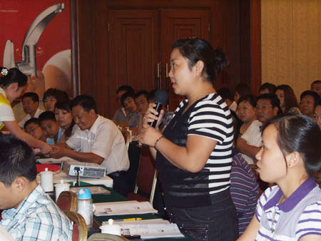 李佳麗老師把這次的培訓分為兩大內(nèi)容:商務禮儀與職業(yè)形象塑造。在第一部分課程中,她首先提出“這是一個服務制勝的年代!”的觀點,并引用了國外多家知名企業(yè)的實例和相關權威調(diào)查數(shù)據(jù)來證明“服務”的內(nèi)涵和意義。在課程講授過程中,李老師設計了了許多的游戲,讓學員主動參與其中,在愉快的學習氛圍中現(xiàn)場學習實用的商務禮儀知識。李老師從儀容儀表禮儀、語言溝通禮儀、商務接待禮儀等多個方面來講解在當今商務交往活動中應當注意的商務禮儀和著裝規(guī)范,在現(xiàn)場中舉出了許多生動的例子來講解正確的商務禮儀中的一些細節(jié)標準。培訓課程中的另外一個特色是,現(xiàn)場邀請了匯泰龍公司的多名工作人員現(xiàn)場表演示范,并添加了許多網(wǎng)絡視頻和電影剪輯使整個課程直觀生動。在培訓最后環(huán)節(jié),李老師播放了匯泰龍門店銷售過程視頻,啟發(fā)在場的學員利用今天學習的知識對視頻中的各個細節(jié)加以評判和分析,提出改善的意見,把學到的理論知識拿到實際工作中來指導我們的工作,參訓學員各抒已見,討論激烈,培訓在良好的學習氛圍中進行。