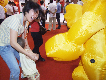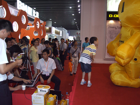 展館外,創(chuàng)意無(wú)限的展臺(tái)形象,逗留在匯泰龍展臺(tái)前的觀眾爭(zhēng)先合影留念,一分鐘快照項(xiàng)目讓觀眾留下了美好的回憶??蓯鄱喝さ膮R泰龍吉祥物——星Q互動(dòng),吸引了眾多參觀者的眼球,匯聚了全場(chǎng)最高的人氣,讓匯泰龍展臺(tái)一如往年成為展會(huì)的人氣中心。