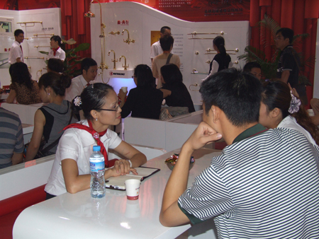 二樓的商務(wù)洽談區(qū),前來(lái)表示合作意向的客商絡(luò)繹不絕,匯泰龍公司準(zhǔn)備了精美的糖果和茶水,溫馨舒適的商務(wù)洽談環(huán)境無(wú)不表達(dá)出匯泰龍公司對(duì)工作細(xì)節(jié)的注重,經(jīng)過(guò)專業(yè)系統(tǒng)禮儀培訓(xùn)的工作人員為每一位進(jìn)入洽談區(qū)的客商提供了細(xì)致周到的服務(wù),給在專場(chǎng)參觀的觀眾留下了深刻的印象。