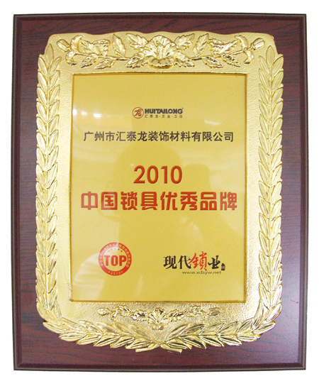 在“中國鎖具行業(yè)優(yōu)秀品牌推薦網(wǎng)絡(luò)評(píng)選”活動(dòng)中,匯泰龍榮獲“2010年中國鎖具優(yōu)秀品牌”的稱號(hào),并獲證書。
