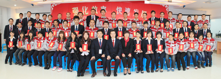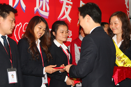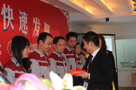 董事長和總經(jīng)理發(fā)言后,在此次開工大會上對2010年度評選出的優(yōu)秀員工和執(zhí)行力標(biāo)兵頒發(fā)了榮譽證書和獎勵。本次共評選出執(zhí)行力標(biāo)兵15人,優(yōu)秀員工49人,由董事長和總經(jīng)理分別對獲獎人員頒發(fā)榮譽證書。