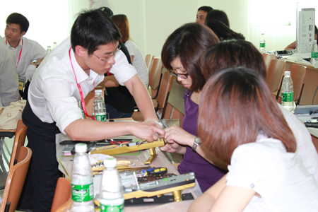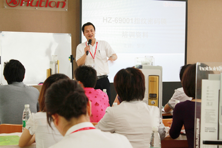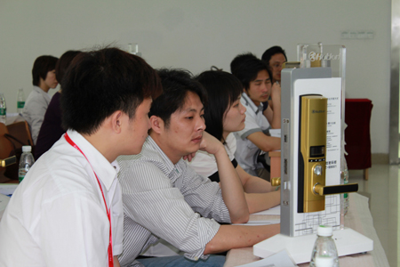 此次的培訓分為多個板塊,分別為:智能鎖市場分析;匯泰龍新產(chǎn)品介紹;操作使用;安裝與調(diào)試;售后服務。培訓采用幻燈片演示以及現(xiàn)場實操演練相結合,直觀地再現(xiàn)了匯泰龍智能電子門鎖內(nèi)部結構和性能特點,從大家的自由的討論中總結匯泰龍新款智能電子鎖的優(yōu)勢:360度指紋識別、啟動時間不到1秒、時尚的產(chǎn)品外觀設計、雙核雙電路設計等,在實操部分,大