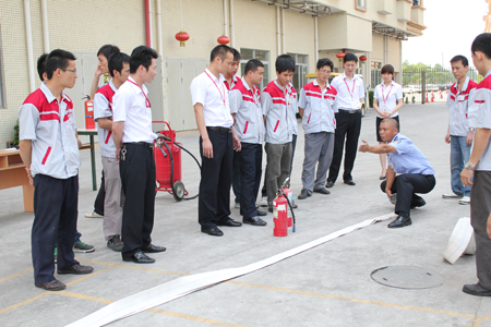 2011年5月18日下午3點,匯泰龍行政管理部組織了消防滅火演習,現場安排了多名保安人員和生產基地各車間和部門負責人參加,行政中心總監(jiān)任志平先生在現場作了培訓的宣導和觀摩。在這次消防演練分為干粉滅火器演練與打消防水帶操作演練。通過演習,增強員工的消防意識,讓參與的每個人都能從中學到知識,“知火險”“知報警”“知救助”“知滅火方法”,每個人都有所收獲。同時,也增強了保安員和崗位責任人的消防技能,為今后的消防滅火工作積累經驗。