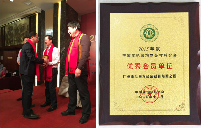 并榮獲“2015年度中國建筑裝飾協(xié)會材料分會優(yōu)秀會員單位”