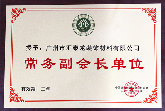 匯泰龍榮升“中國建筑裝飾協(xié)會材料分會常務(wù)副會長單位”