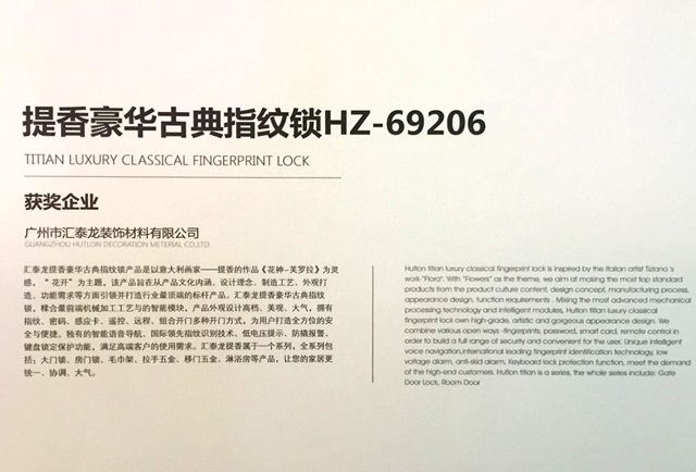 更為難得是,匯泰龍?zhí)嵯懵氏扔谛袠I(yè)內(nèi)提出了全系列產(chǎn)品設(shè)計理念,包括;大門鎖、房門鎖、毛巾架、拉手五金、移門五金、淋浴房等產(chǎn)品,讓您的家居更統(tǒng)一、協(xié)調(diào)、大氣。在本次的設(shè)計周評比中,喜獲“紅棉獎”榮譽。