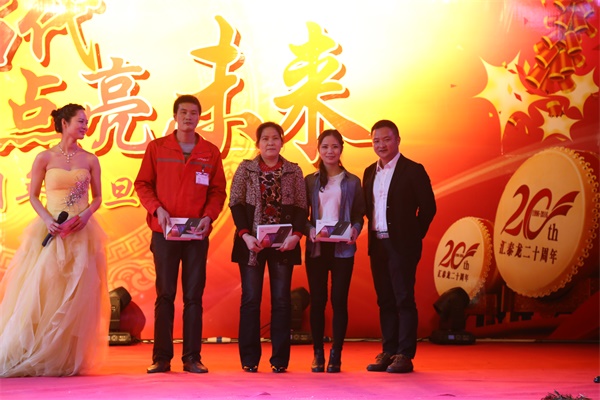 為慶祝公司二十周年,本次晚會(huì)首次評(píng)出12名“感動(dòng)匯泰龍人物”,匯泰龍公司陳董、陳太為獲獎(jiǎng)員工頒發(fā)榮譽(yù)證書(shū)和獎(jiǎng)品“64G香檳金Iphone6S”。