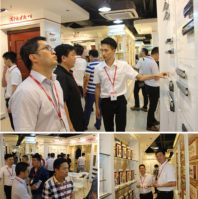 匯泰龍工作人員為現(xiàn)場(chǎng)嘉賓介紹生活五金產(chǎn)品
