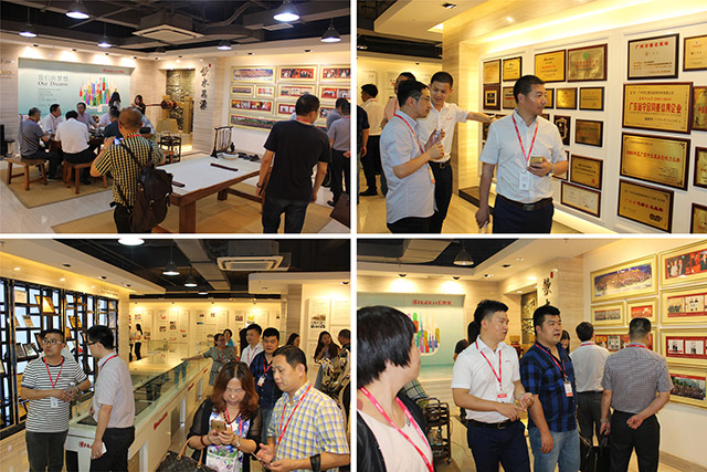 接著,參會(huì)嘉賓參觀了匯泰龍歷史文化館,見(jiàn)證了匯泰龍二十年來(lái)的品牌文化和發(fā)展歷史。二十年來(lái),匯泰龍從廣州泰康路建材集散地走上了五金世界的大舞臺(tái),走向國(guó)際知名品牌,帶動(dòng)了裝飾五金行業(yè)品牌發(fā)展之路。墻上一張張的老舊照片,記載著匯泰龍用激情與榮耀,書(shū)寫(xiě)的一部從無(wú)到有,由弱變強(qiáng),一路劈荊斬棘,風(fēng)雨兼程的企業(yè)奮斗史。