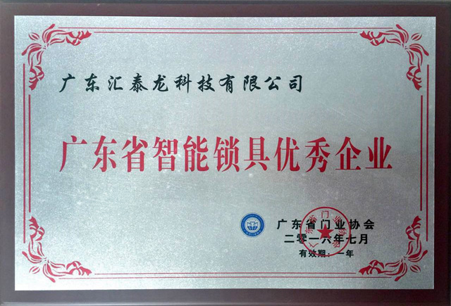 匯泰龍榮獲廣東省智能鎖具優(yōu)秀企業(yè)