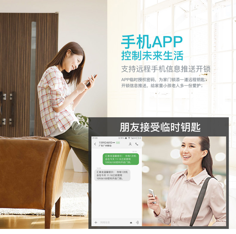 除了防盜,便捷也是智能門鎖的一大亮點,市面上常見的智能門鎖有指紋、密碼、感應(yīng)卡、應(yīng)急鑰匙四種開鎖方式,讓我們輕松擺脫忘帶鑰匙等煩惱。而匯泰龍云鎖不僅如此,除了前面說的四種開門方式外,還擁有遠(yuǎn)程手機開鎖和授權(quán)臨時密碼開鎖等功能。親友到訪,家人卻不在家時,就可以通過手機遠(yuǎn)程開鎖或發(fā)送臨時密碼給Ta,讓Ta不必在家門口傻等。匯泰龍云鎖比普通智能門鎖更便捷,極大的便利我們的生活。