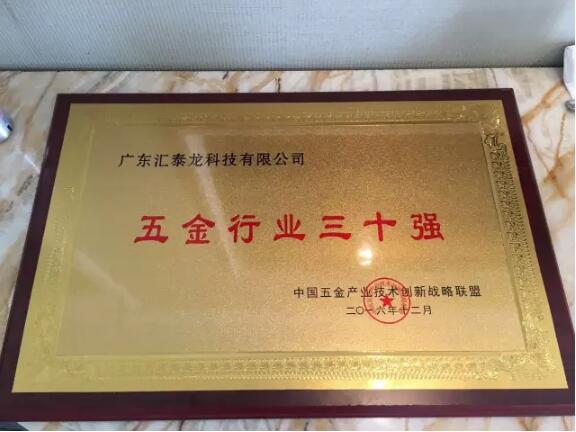 ▲匯泰龍榮獲五金行業(yè)三十強企業(yè)榮譽