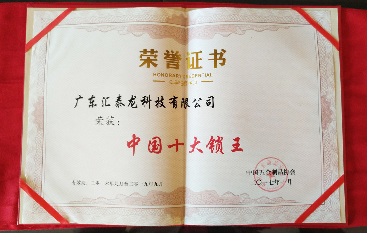 “中國十大鎖王”、“中國智能鎖知名品牌”的評選,歷經(jīng)層層選拔,要求嚴格,考核質(zhì)量指標和市場占有率指標,產(chǎn)品質(zhì)量要處于國內(nèi)領先地位,市場占有率、品牌知名度、產(chǎn)品開發(fā)能力等居鎖具行業(yè)前列,能獲選“中國十大鎖王”和“中國智能鎖知名品牌”,是對匯泰龍在鎖具行業(yè)的影響力、鎖具產(chǎn)品的綜合實力的絕對認可。