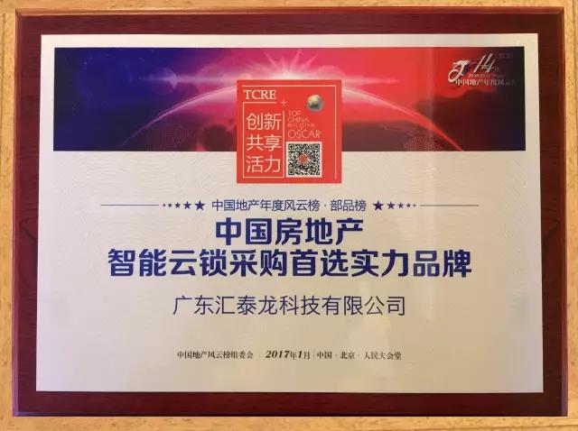 匯泰龍榮獲“中國房地產(chǎn)智能云鎖采購首選實力品牌”