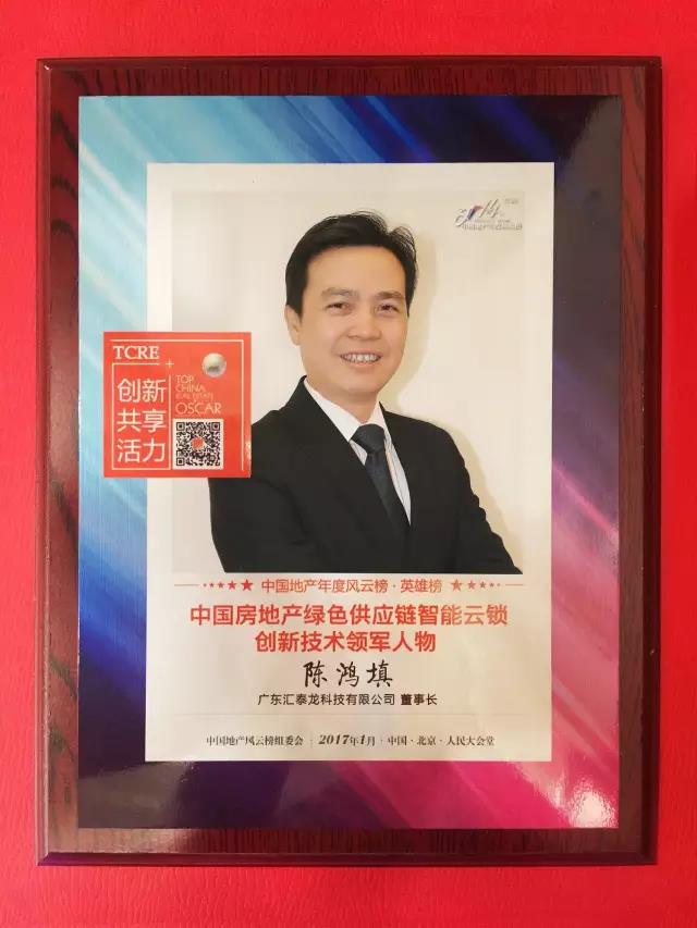 匯泰龍董事長陳鴻填先生榮獲“中國房地產(chǎn)綠色供應(yīng)鏈智能云鎖創(chuàng)新技術(shù)領(lǐng)軍人物”