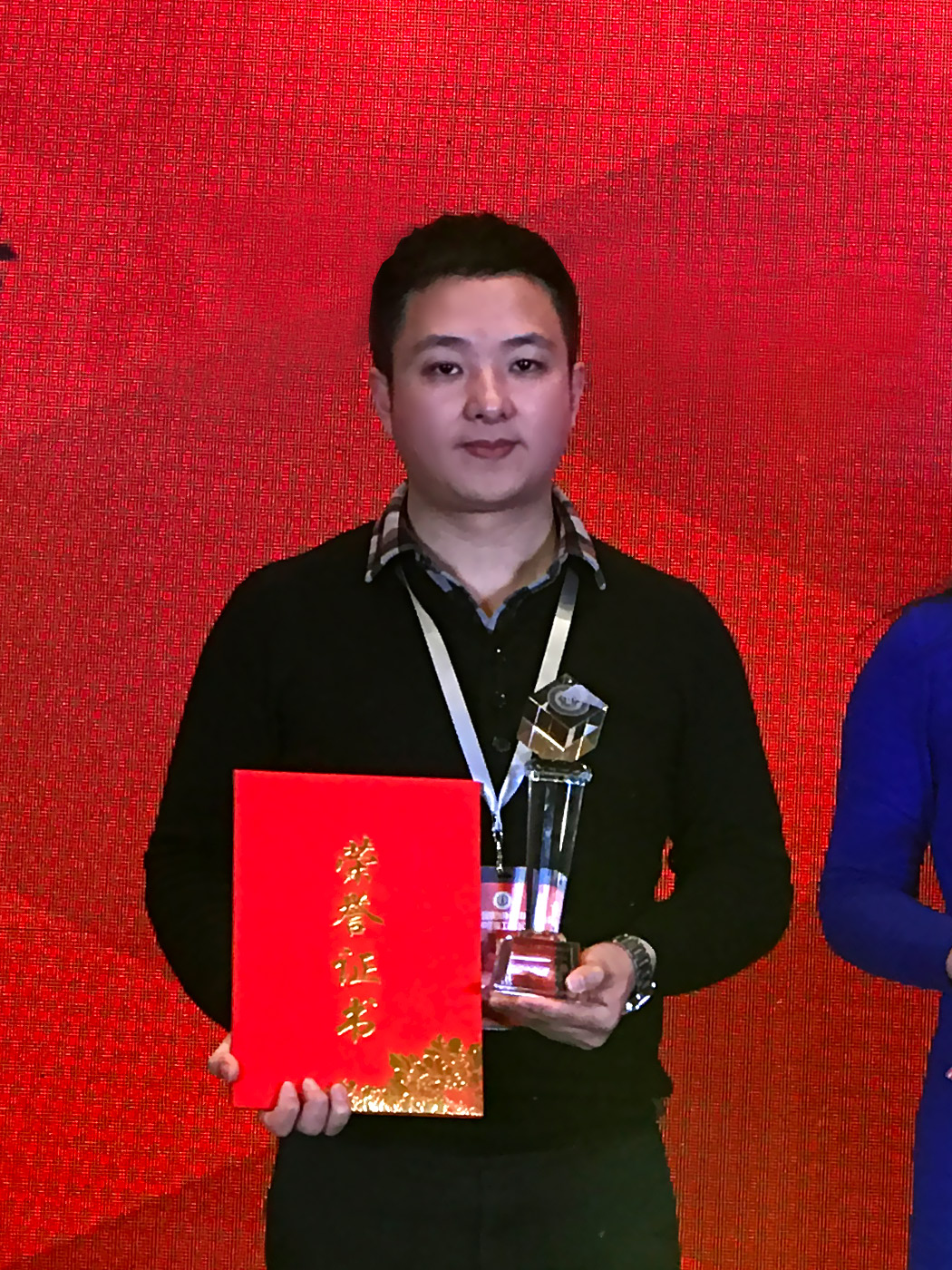匯泰龍總經(jīng)理徐振忠先生(左一)上臺接受「中國建筑裝飾協(xié)會材料分會優(yōu)秀會員」榮譽