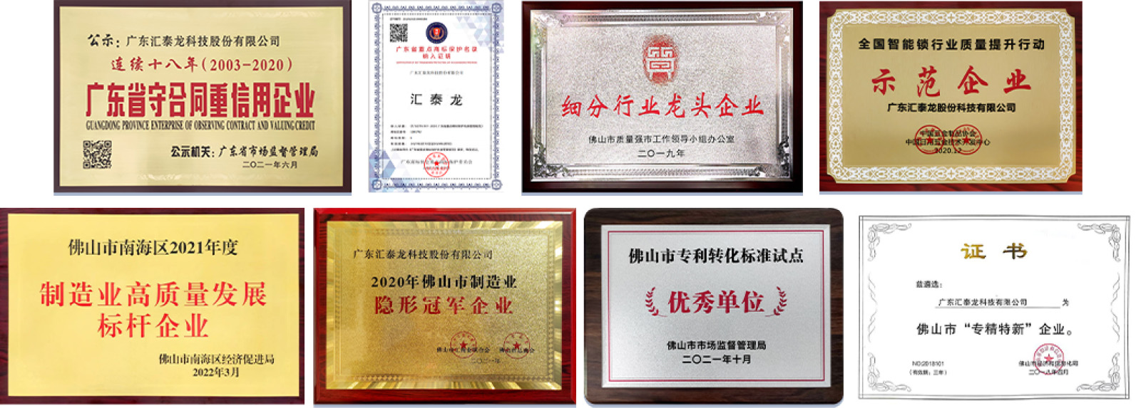 ”廣東省名牌產(chǎn)品“ ”十大智能鎖品牌“、”十大優(yōu)選家居五金品牌“