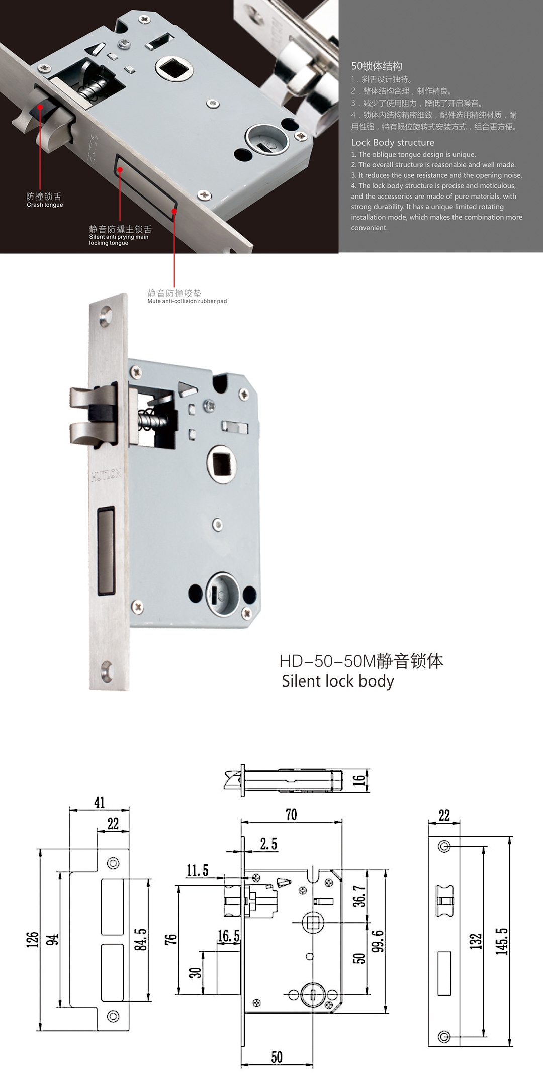 HD-50-50M 靜音鎖體