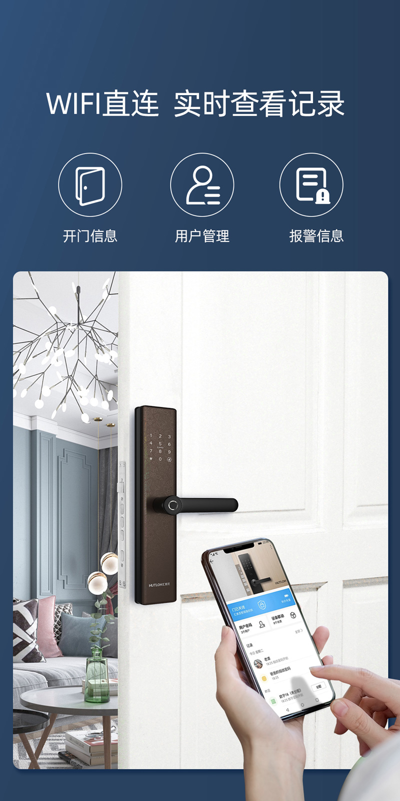 聯(lián)網(wǎng)功能;APP可實(shí)時(shí)顯示開(kāi)鎖、報(bào)警等信息,可遠(yuǎn)程生成臨時(shí)密碼開(kāi)鎖,門(mén)鎖用戶(hù)管理與設(shè)置等操作,更加安全、人性化與便捷;