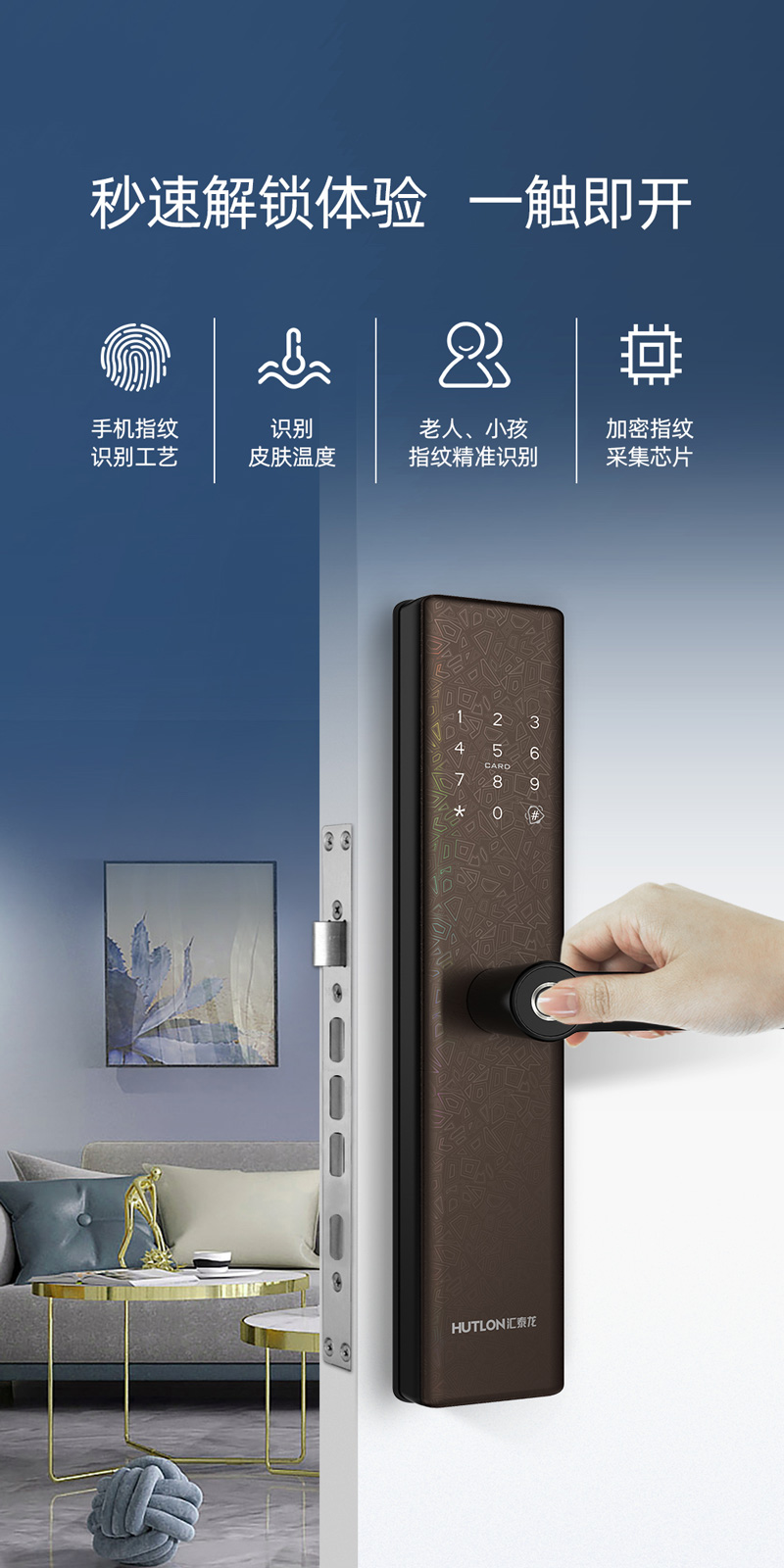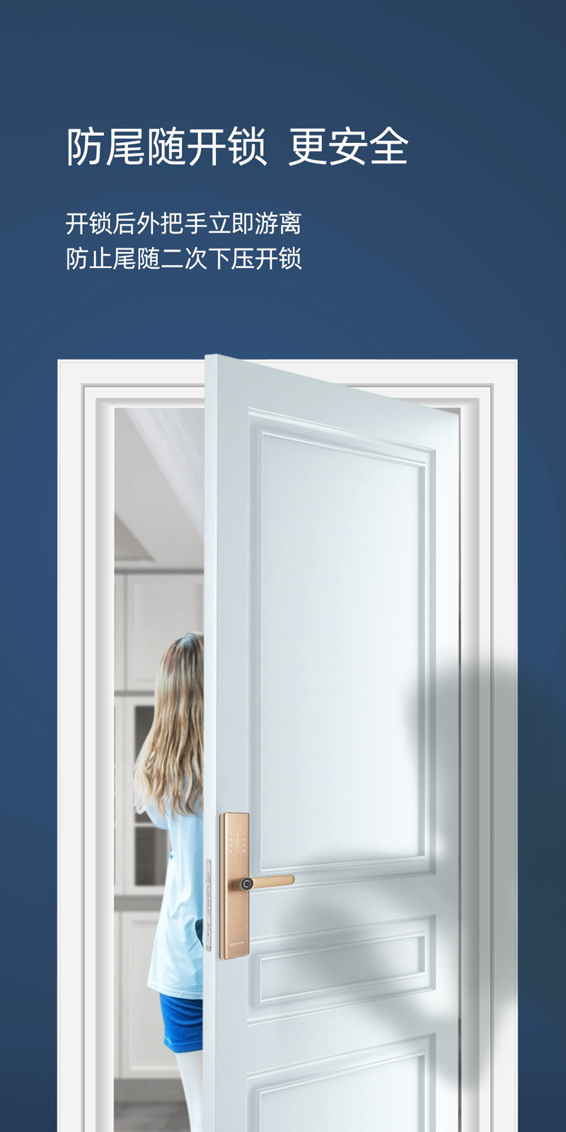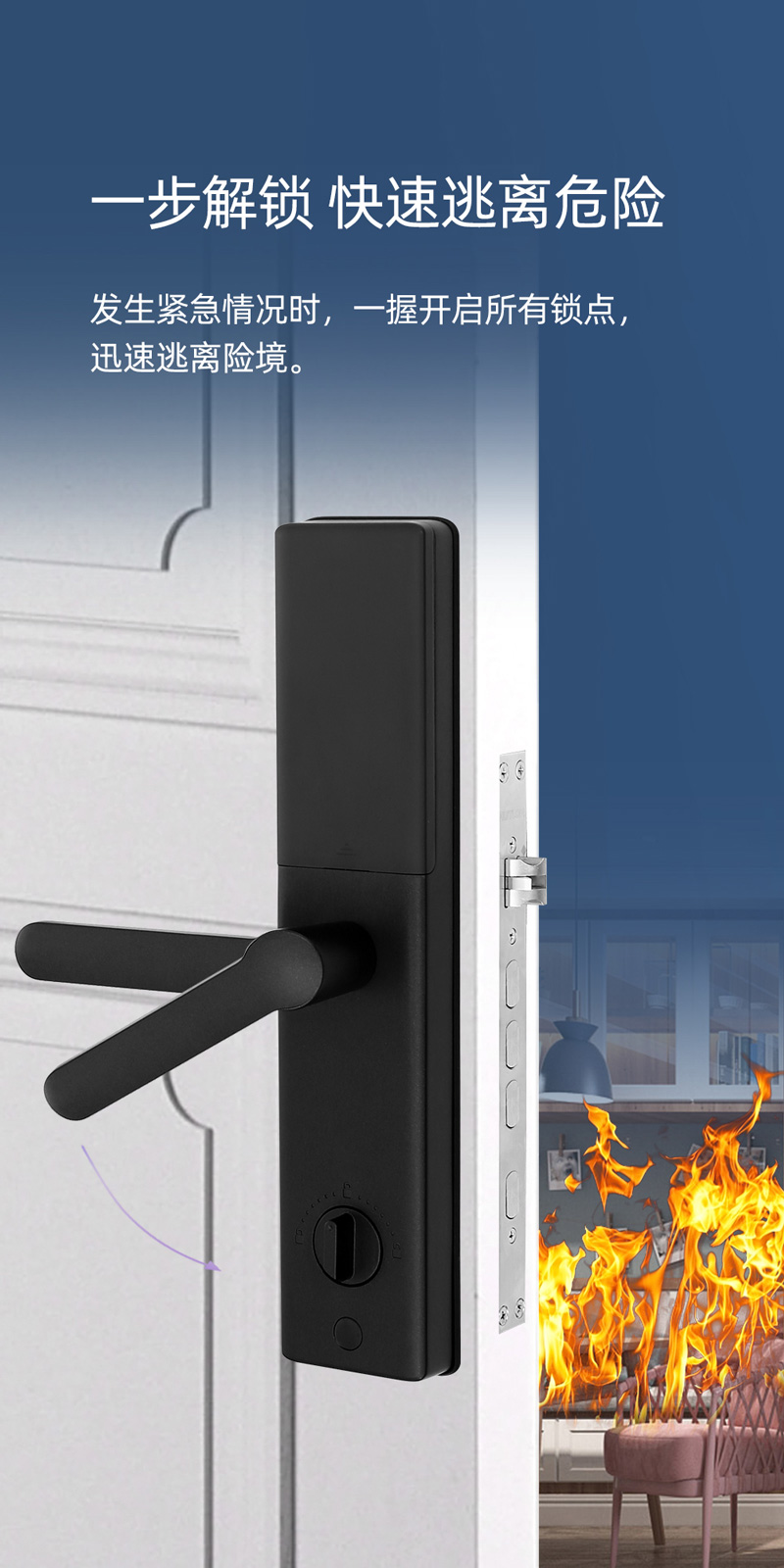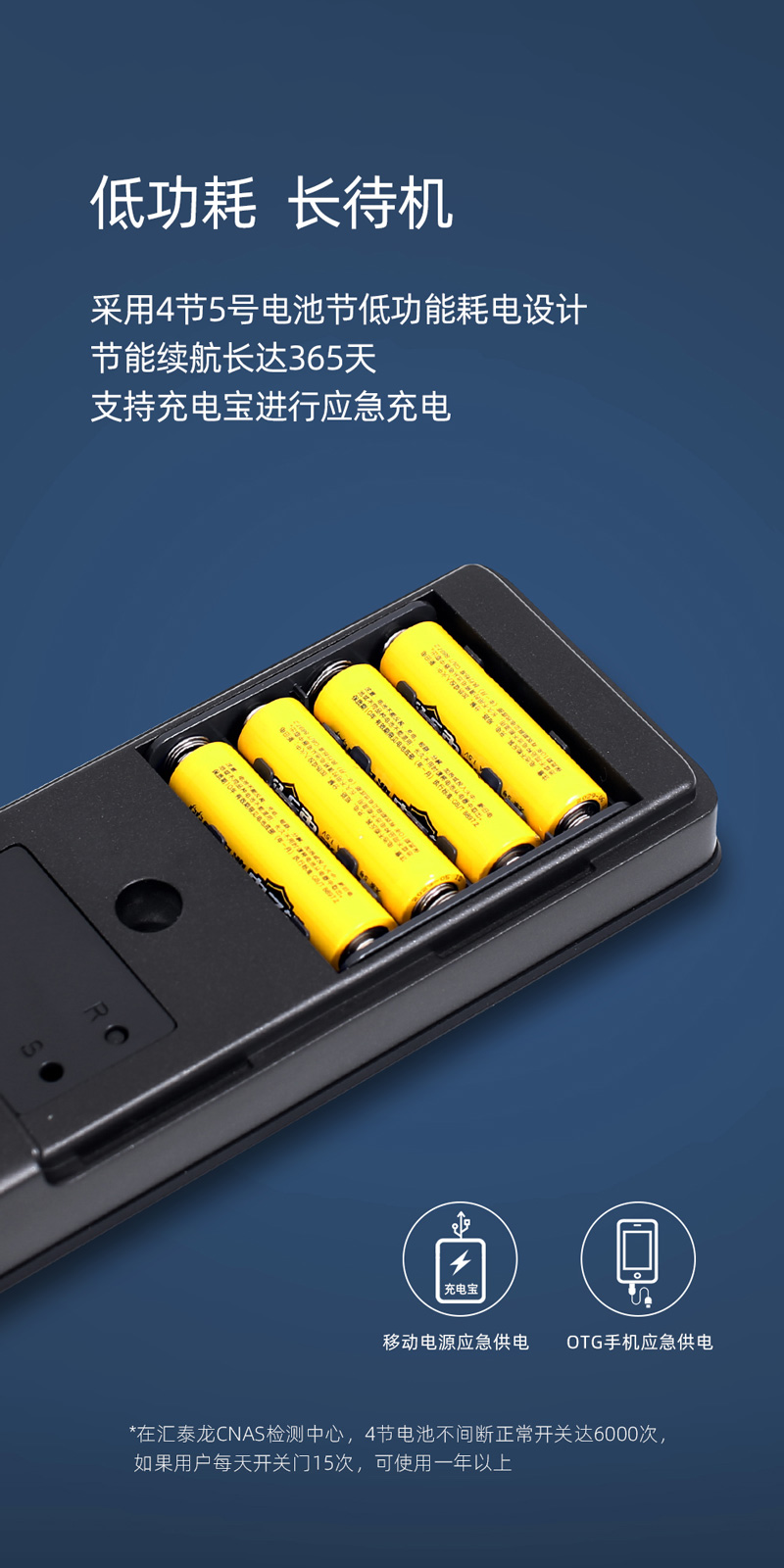 支持指紋、密碼、感應(yīng)卡、機(jī)械鑰匙四合一開(kāi)鎖方式;