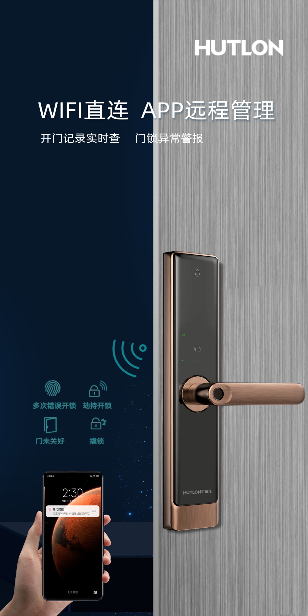 聯(lián)網功能;APP可實時顯示開鎖、報警等信息,可遠程生成臨時密碼開鎖,門鎖用戶管理與設置等操作,更加安全、人性化與便捷;