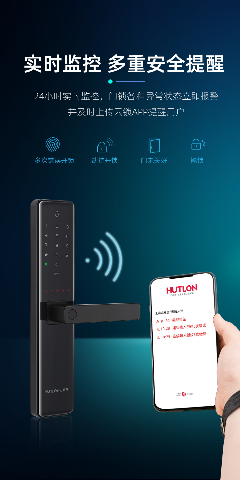 聯(lián)網(wǎng)功能;APP可實時顯示開鎖、報警等信息,可遠(yuǎn)程生成臨時密碼開鎖,門鎖用戶管理與設(shè)置等操作,更加安全、人性化與便捷;