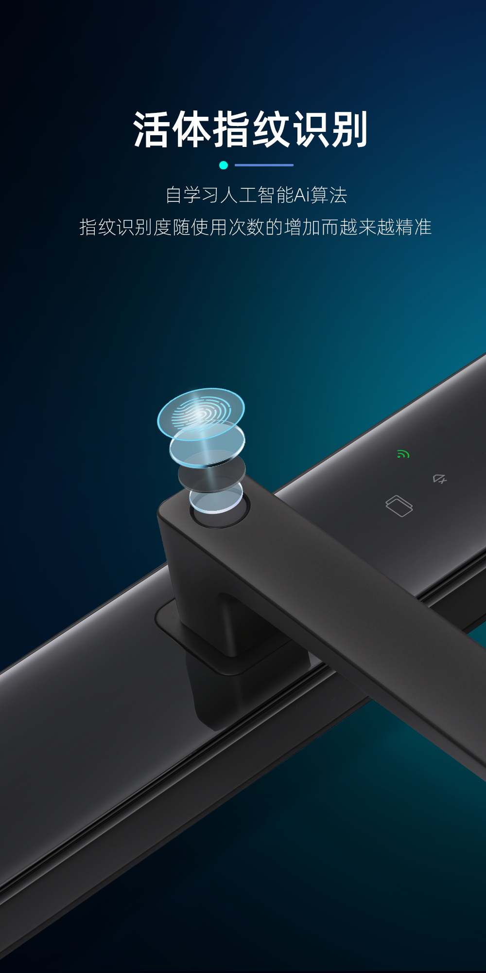 .半導(dǎo)體指紋頭設(shè)計在把手上,識別率高,識別速度快,指紋識別和下壓把手一步開門