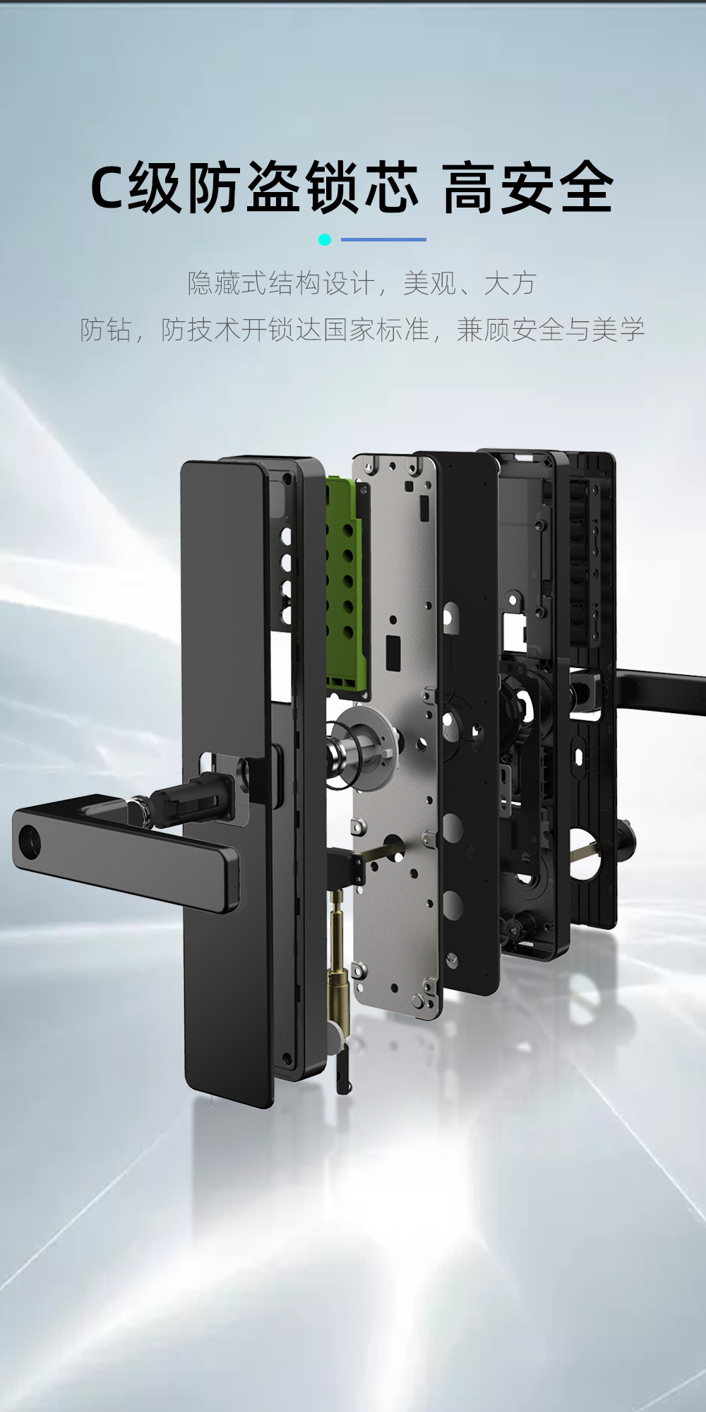 上提實現(xiàn)反鎖,把手游離設(shè)計,防止暴力破壞,安全可靠;