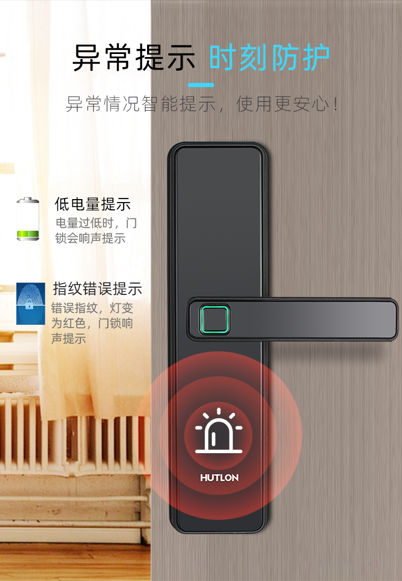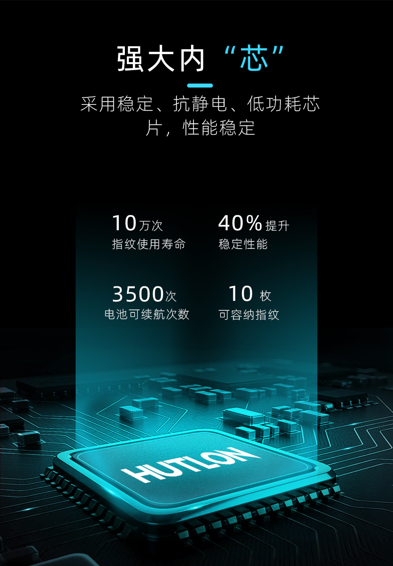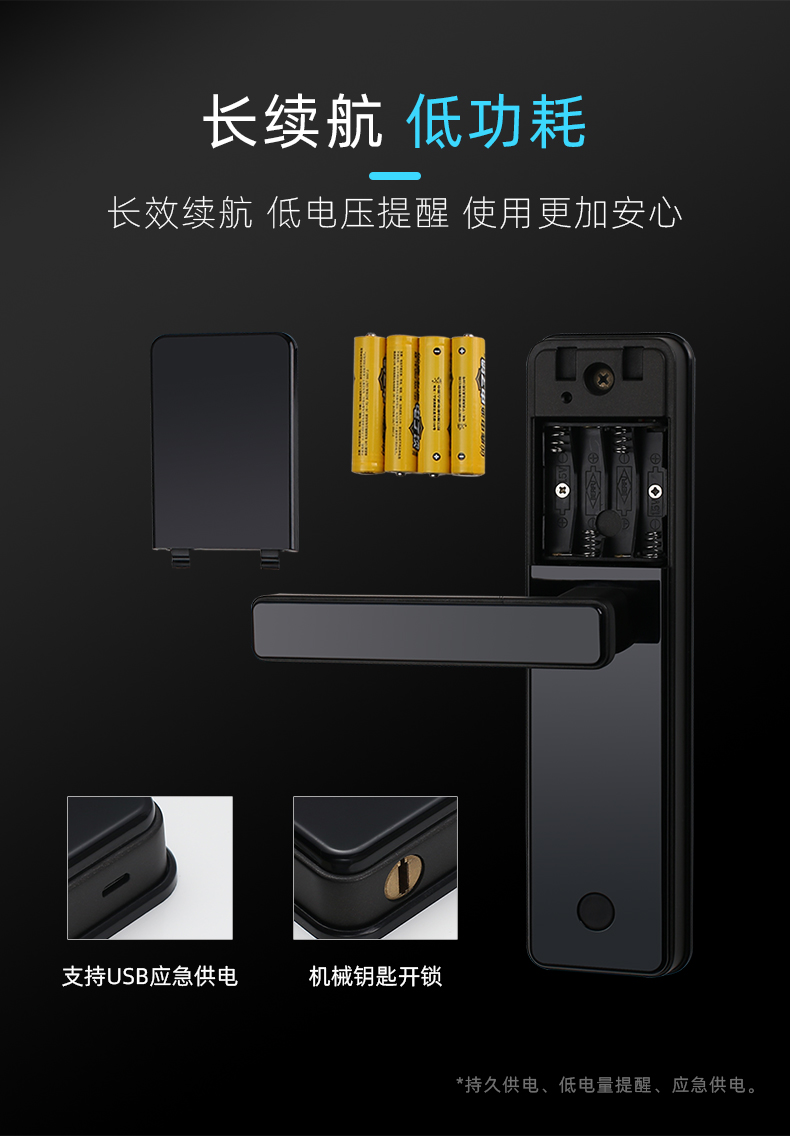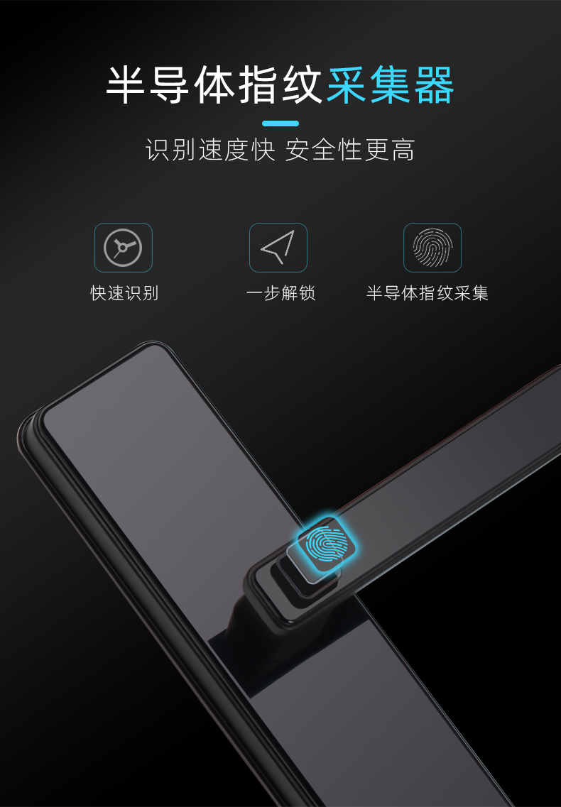 1. 把手指紋設(shè)計,采用瑞典FPC生物識別傳感器,一體化帶燈光提示指紋讀頭設(shè)計,極速識別開鎖快人一步;